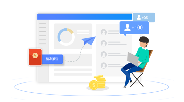 支持對(duì)海量的客戶以及客戶群,推送消息、甚至小程序、優(yōu)惠券等,并可追蹤效果。